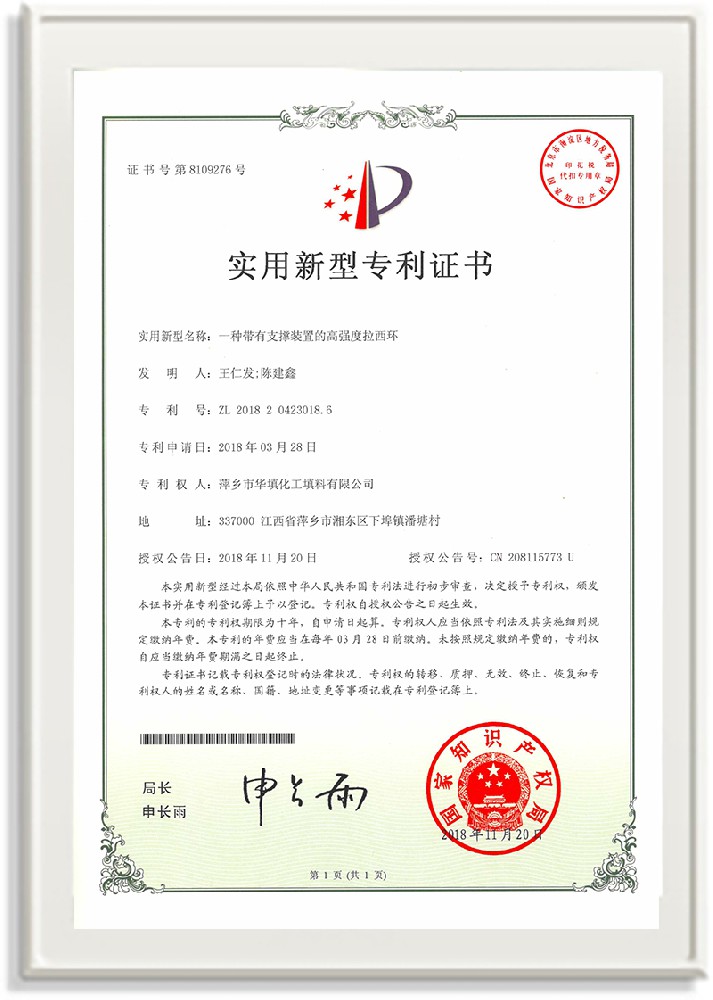 萍鄉(xiāng)市華填化工填料有限公司,位于320國道、109國道、浙贛鐵路、昌金高速公路貫穿其中,交通便利,是江西西部一顆燦爛明珠,創(chuàng)建于20世紀70年代初期,是中國石油天然氣股份有限公司“能源一號網(wǎng)”會員企業(yè)、中國石化物資采購電子商務(wù)網(wǎng)絡(luò)和中國海洋石油總公司采辦業(yè)務(wù)系統(tǒng)成員單位,是上海大學江西材料基因組工程產(chǎn)業(yè)研究院工業(yè)陶瓷產(chǎn)業(yè)創(chuàng)新聯(lián)盟基地,且通過ISO9001:2015質(zhì)量管理體系、ISO14001:2015環(huán)境管理體系、ISO45001:2018職業(yè)健康安全管理體系認證的化工填料生產(chǎn)企業(yè)。公司擁有陶瓷、塑料、金屬填料、催化劑、活性氧化鋁、分子篩等產(chǎn)品生產(chǎn)線,現(xiàn)有固定資產(chǎn)3616萬元,占地面積3.8萬平方米。公司具有悠久的生產(chǎn)歷史、雄厚的技術(shù)力量和先進的生產(chǎn)工藝設(shè)備,可生產(chǎn)工業(yè)瓷球(支撐劑)、陶瓷、金屬、塑料質(zhì)的規(guī)整、散堆化工填料及分子篩、催化劑、生化濾料、活性氧化鋁、石化助劑、活性炭、環(huán)保材料、耐火材料等系列的200多種規(guī)格型號產(chǎn)品。